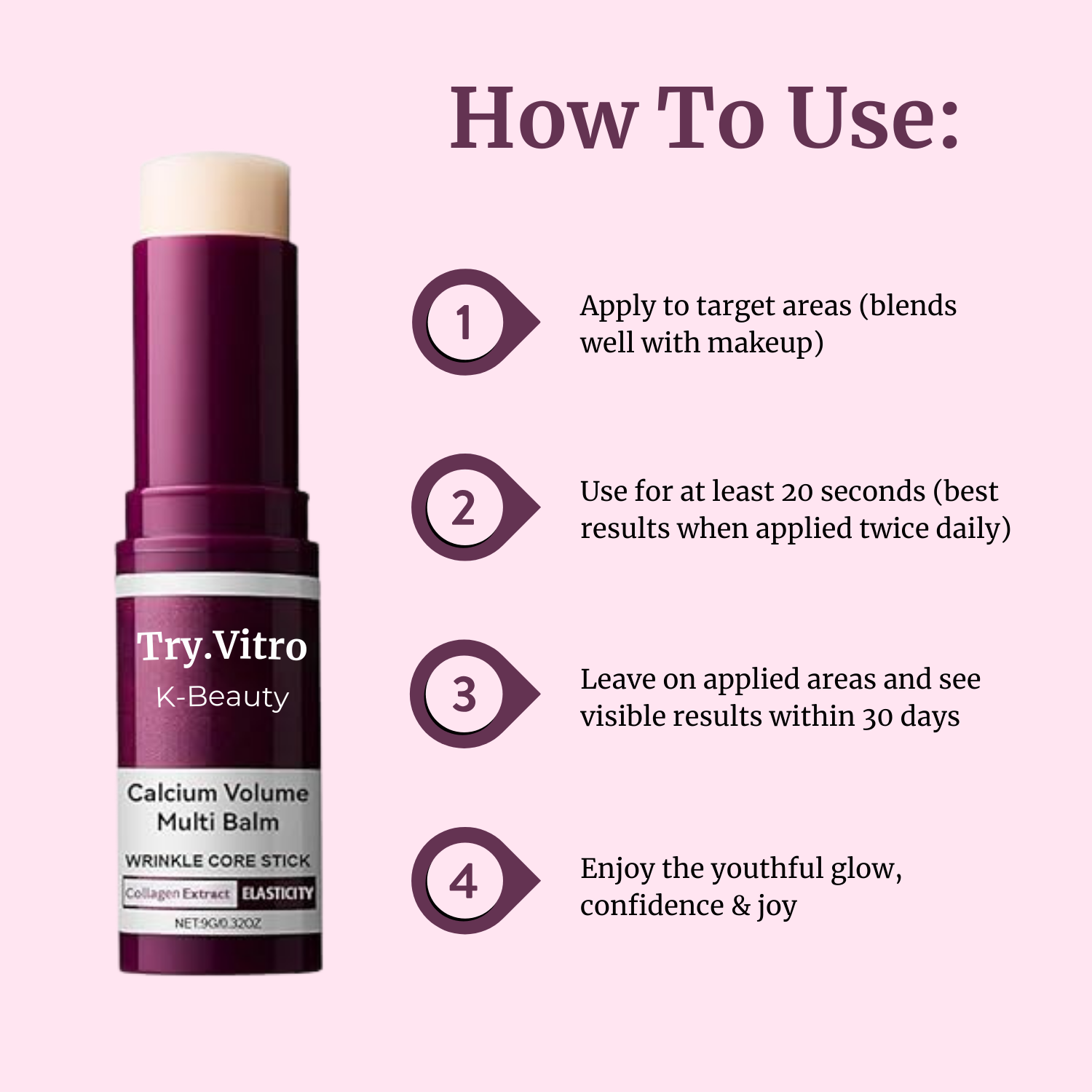 Aging skin loses Calcium, Collagen, and Elastin - leading to wrinkles, sagging, and hollowed areas. Vitro’s balm replenishes these essentials, strengthens the barrier, restores elasticity, and deeply hydrates - leaving skin firmer, smoother, and visibly renewed.