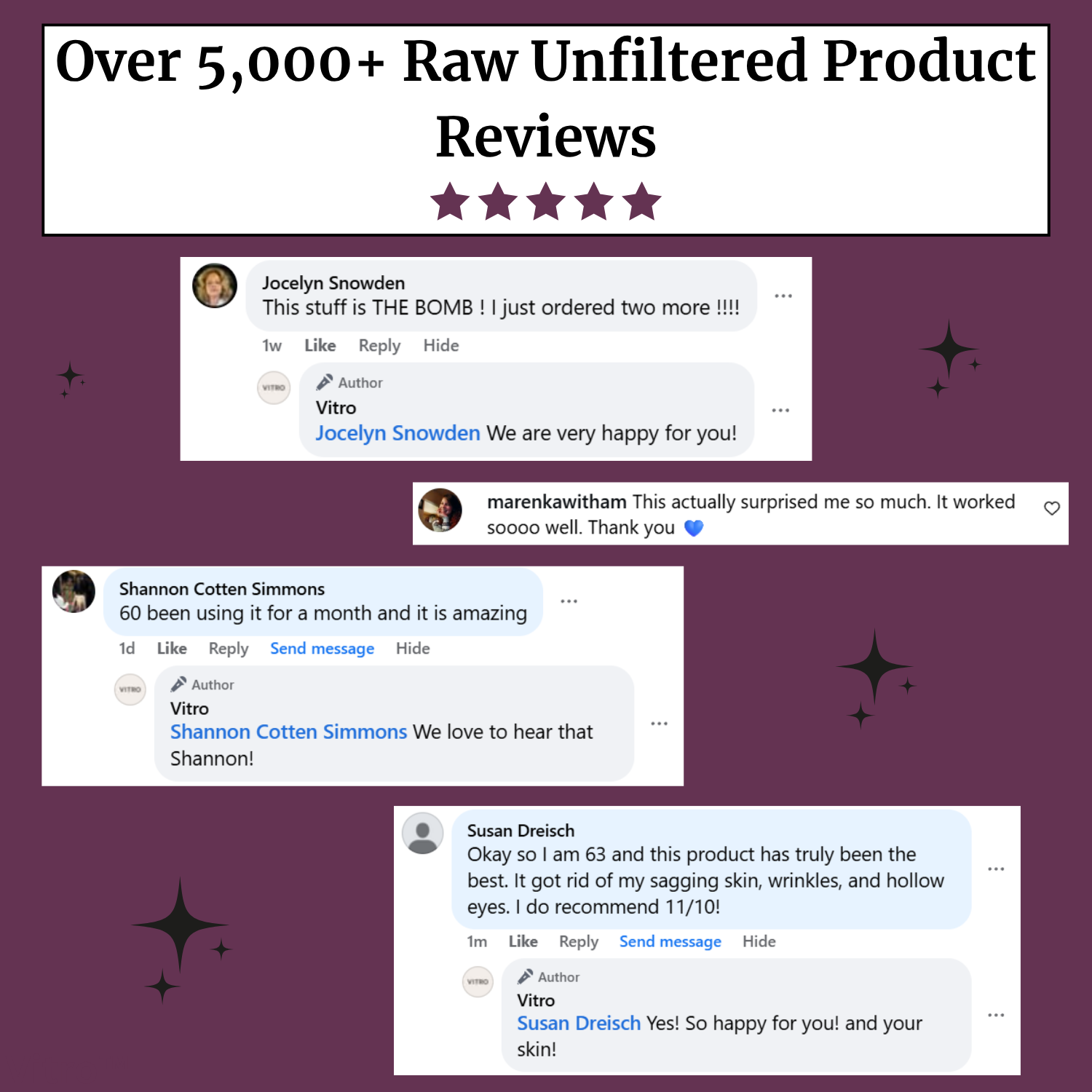 Aging skin loses Calcium, Collagen, and Elastin, causing wrinkles and sagging. Vitro’s balm restores these essentials, strengthens the barrier, improves elasticity, and deeply hydrates — leaving skin firmer, smoother, and visibly youthful.